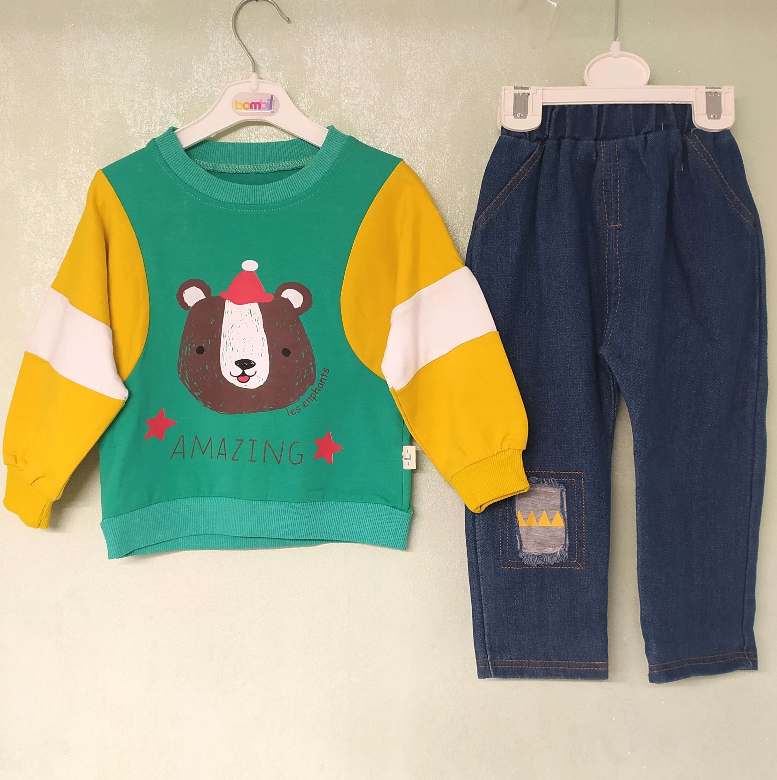 سایزL برای۲سال: قدبلوز۳۵، پهنا۳۲، آستین از انتهای یقه۳۴.۵، قدشلوار۴۹