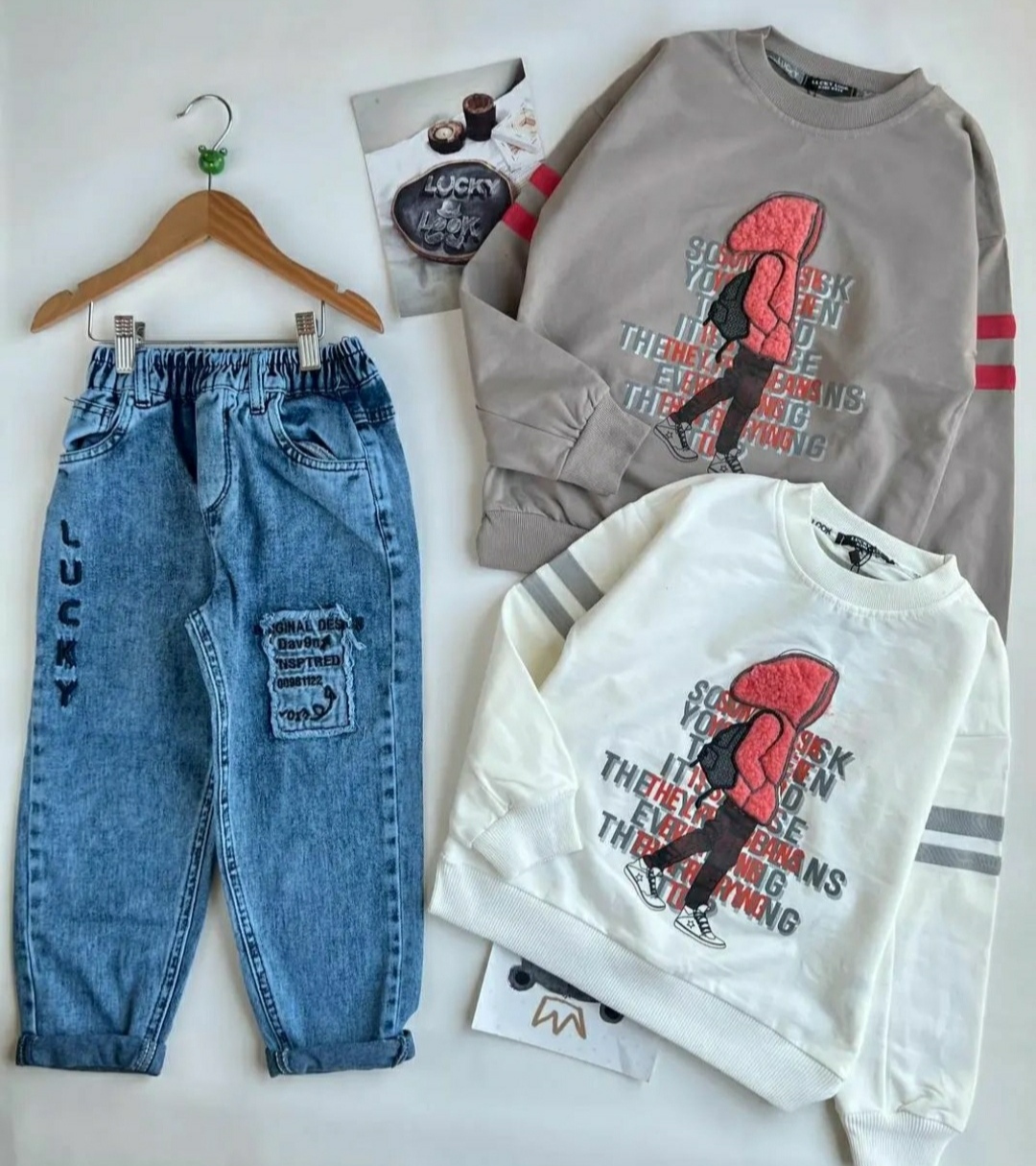 سایز۱ برای ۶تا۷سال: قدبلوز۴۶، پهنا۳۸، آستین از انتهای یقه۵۰، قدشلوار۶۶
